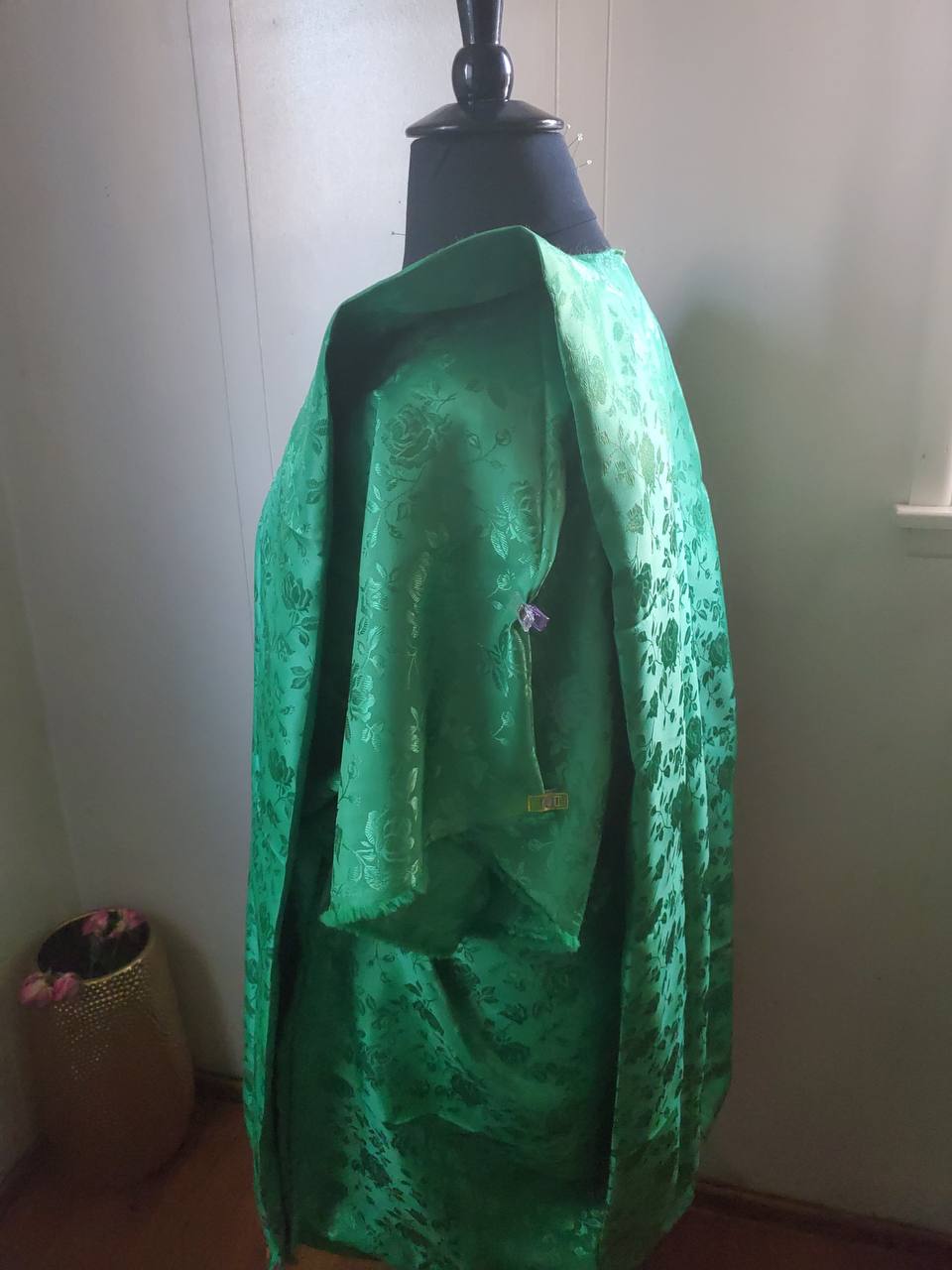 This Traditional Afriwue inspired showcases the exquisite craftsmanship of Haitian people. Made with quality Brocade Jacquard embossed fabrics and designed as one size fits all. It has an inner belt attached to enhance the feminine shape.